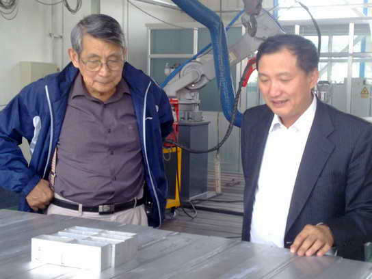 2007年始,王炎金緊盯世界焊接技術(shù)發(fā)展的步伐,在鐵路行業(yè)率先推廣攪拌摩擦焊接和激光MIG復合焊接, 這兩項技術(shù)在世界鐵路裝備制造業(yè)都是剛剛起步,處于嘗試階段。他敏銳第意識到該兩項技術(shù)具有化時(shí)代的意義,可能給鋁合金車(chē)體制造行業(yè)帶來(lái)一次完全的革命,率先采用該技術(shù),可以抓住技術(shù)進(jìn)步的先進(jìn),提高10多倍的效率和大幅提高生產(chǎn)質(zhì)量,節約成本,創(chuàng )造企業(yè)影響力。在世界鐵路行業(yè)上,首次提出該工藝的最佳應用對象和使用范圍,對推廣該技術(shù)的應用,起到了重要作用。在國內第一個(gè)試制出CRH3車(chē)鉤座焊接面板,提高焊接效率20多倍,在世界上,第一個(gè)試制出全攪拌摩擦焊接CRH3車(chē)體,這些技術(shù)的前期工作,為未來(lái)技術(shù)創(chuàng )新的發(fā)展奠定基礎。